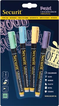 Securit krijtmarker small, blister met 4 stuks in geassorteerde pastelkleuren