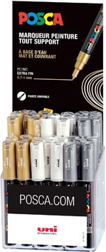Permanent op poreuze oppervlakken.display met 36 stuks in geassorteerde kleuren (goud, zilver, wit)